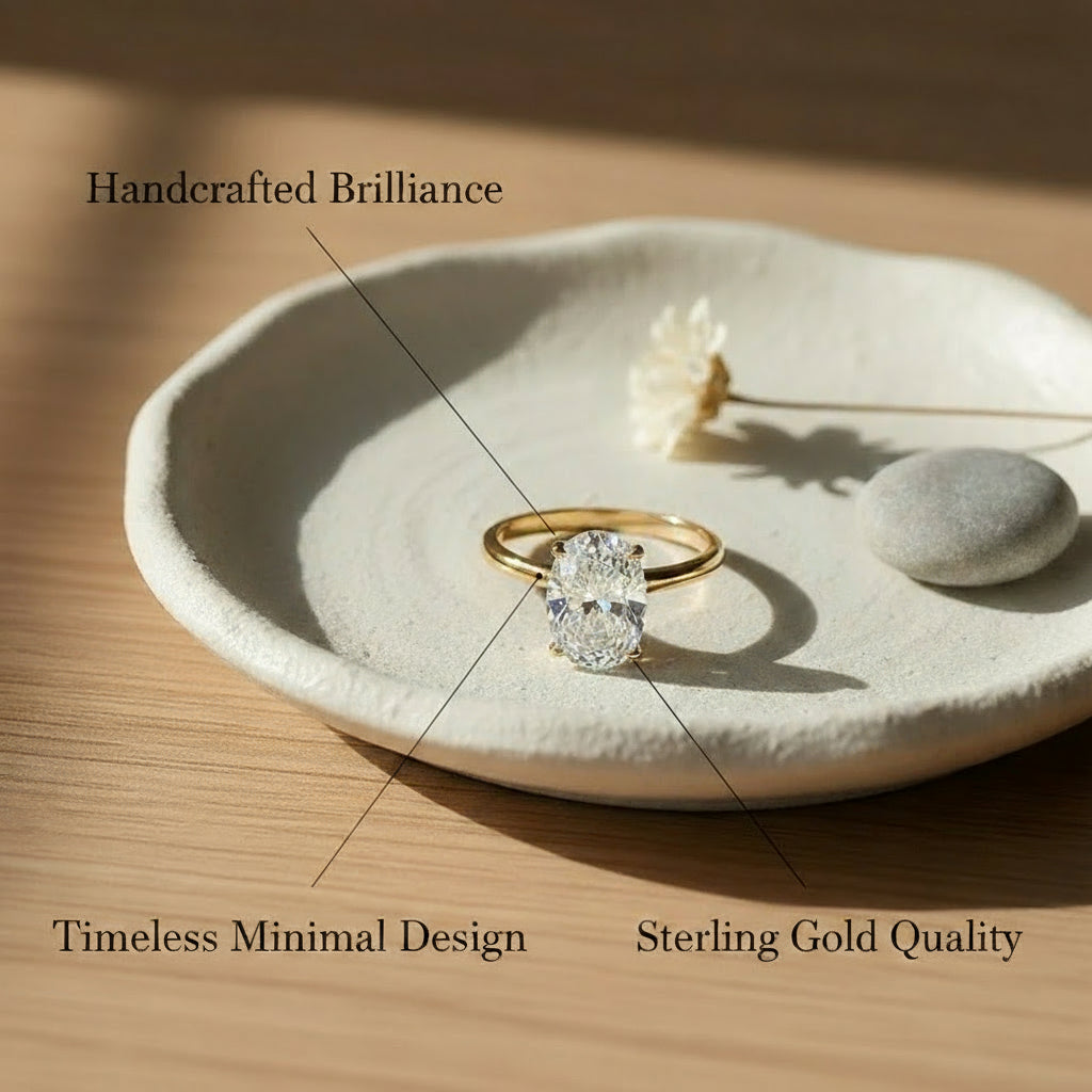 A finely cut zircon stone, set in a prong mount, adds a gentle light — understated by day, radiant by night. Every detail is carefully polished to reflect the sophistication and quiet strength of the women who wear it.
