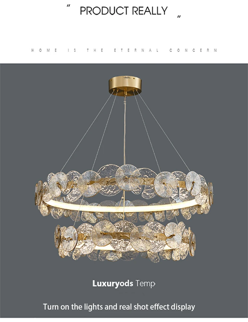Barclay Chandelier Indoor Lotus Leaf Glass lamp Living Dining Room Bedroom Decoration art copper Lamps ring Suspension Lustre