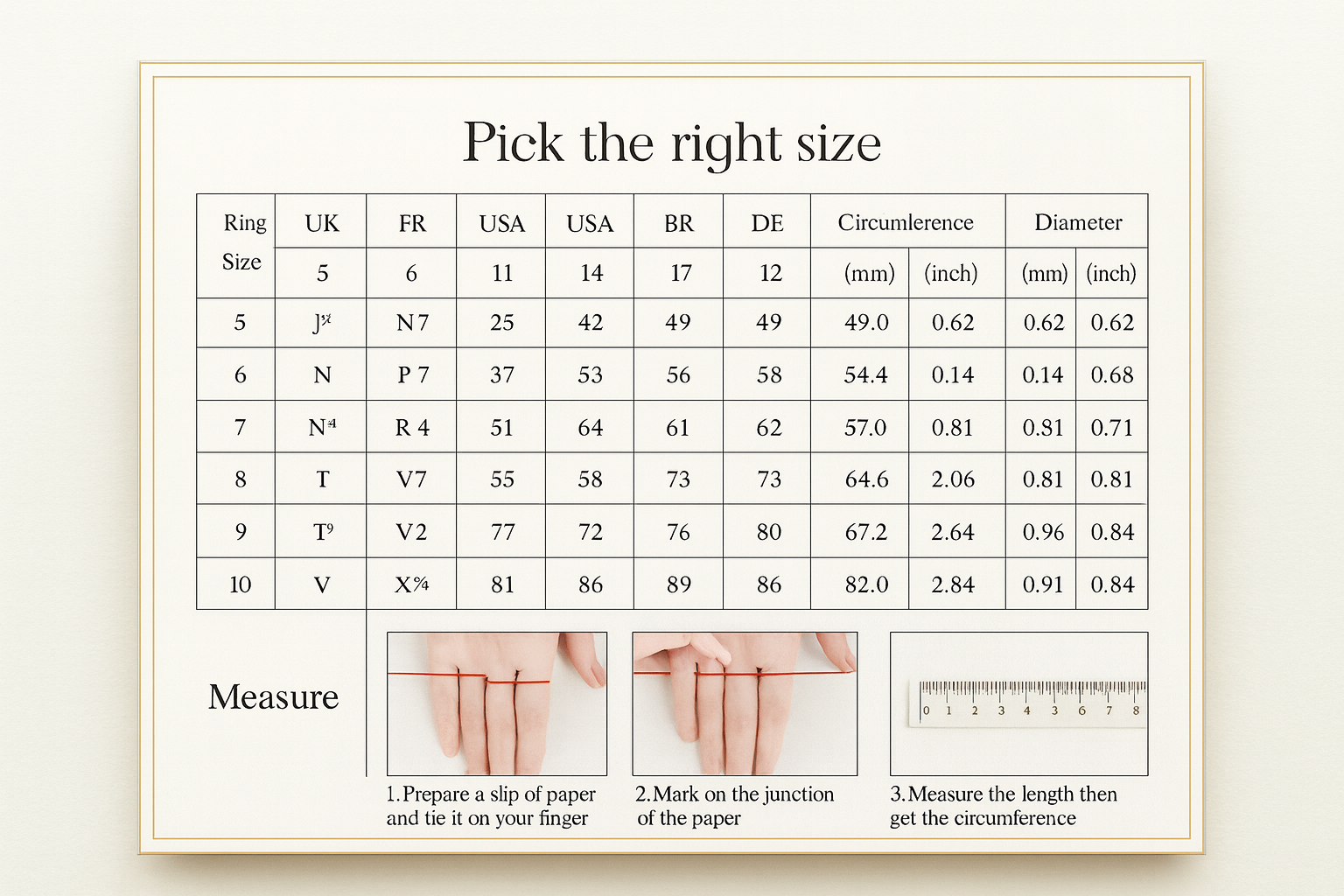 To ensure your Mykonos Grace Ring fits flawlessly, use the chart below to find your ideal size.